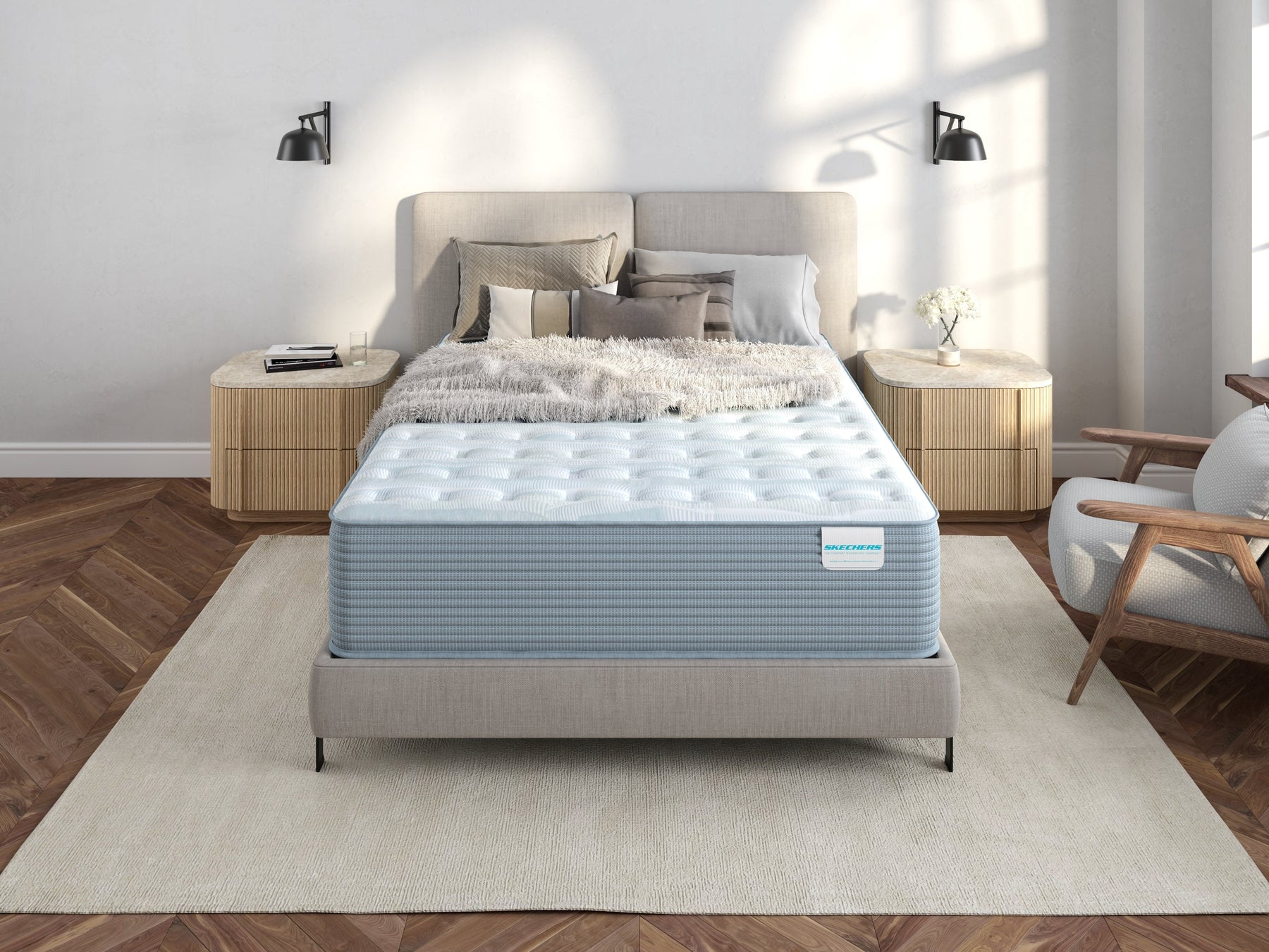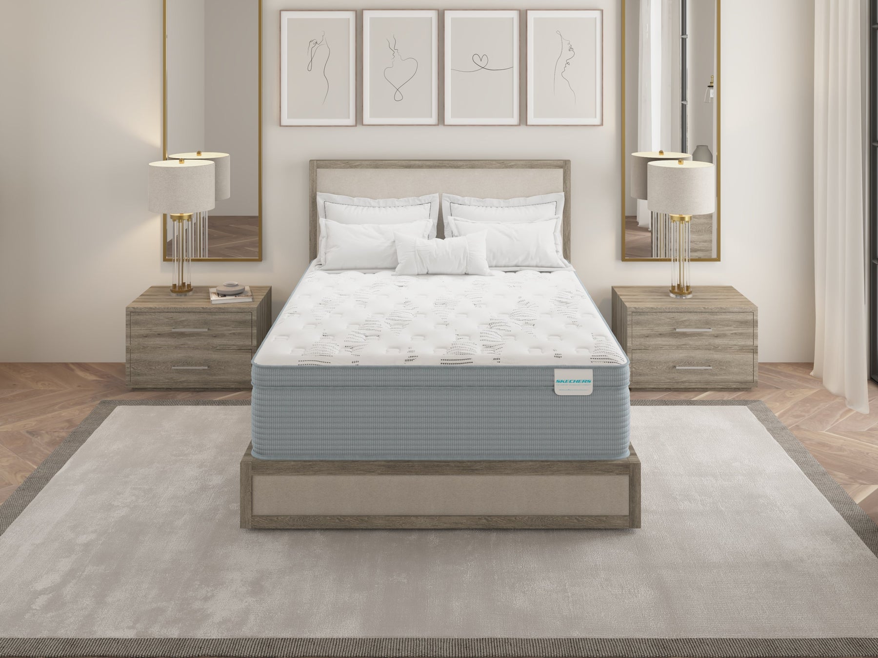 This mattress is intended for use with compatible bed frames and foundations in residential bedrooms. The product includes a 10-year limited warranty.