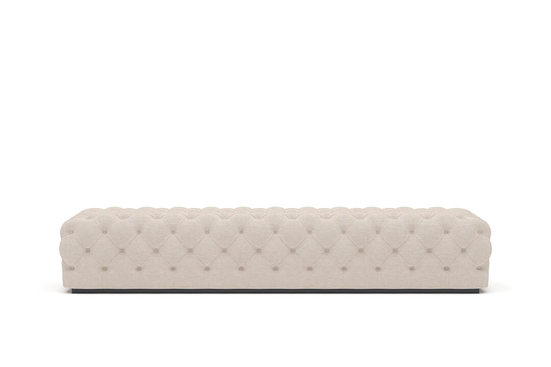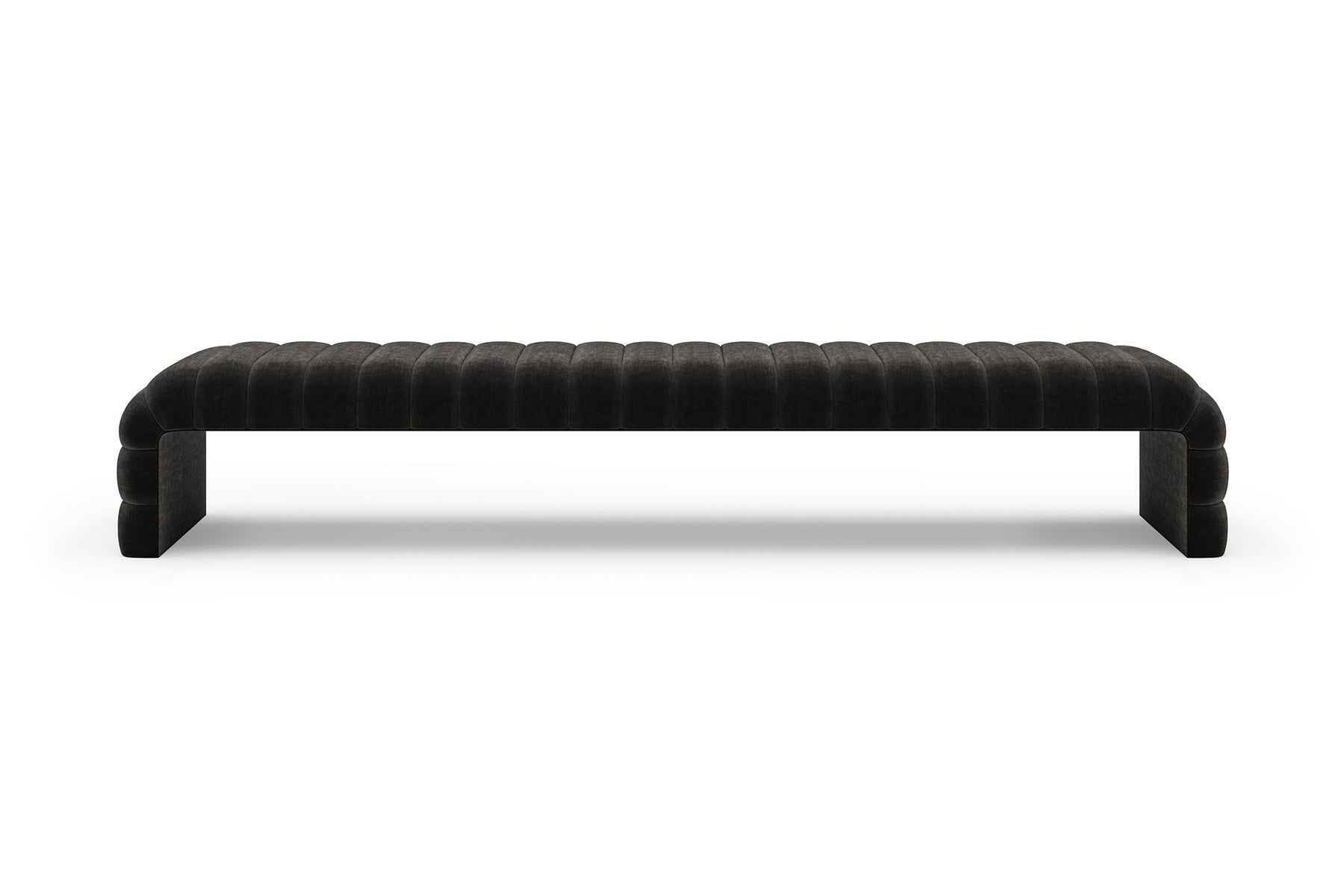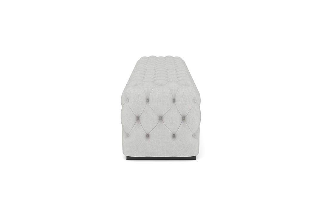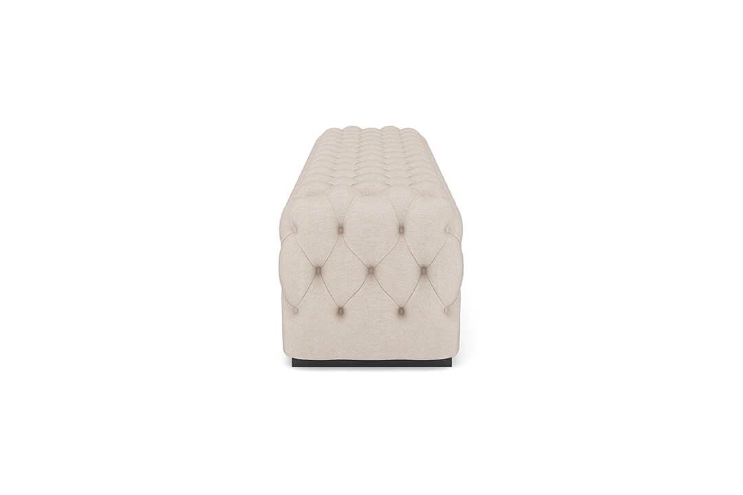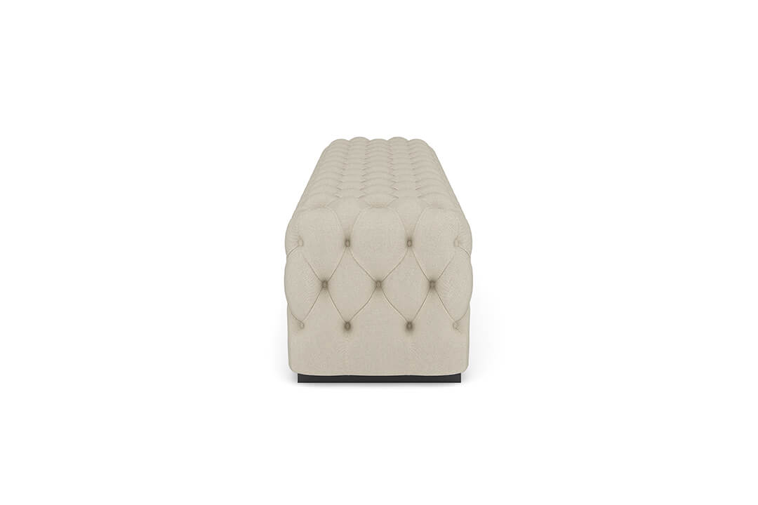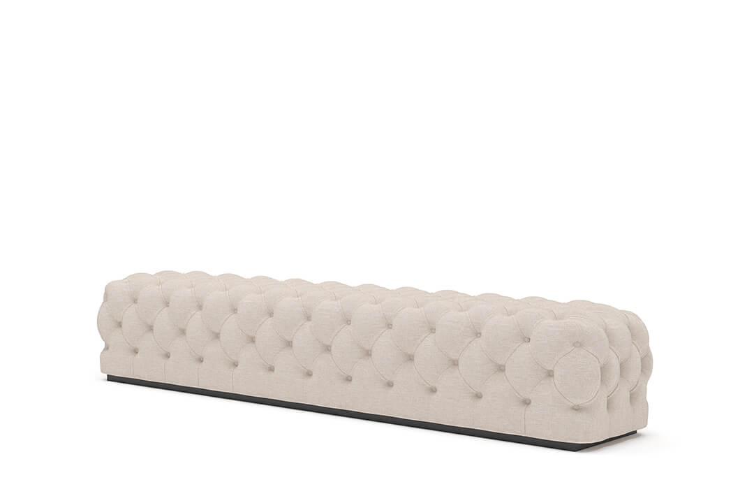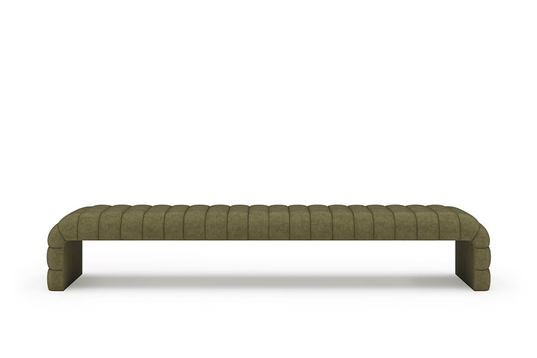 This upholstered bench is designed as a functional seating and accent piece for bedroom use. It features a rectangular silhouette with channel tufted detailing across the upholstered surface, creating a structured and uniform appearance. The bench is sized to provide ample seating space and to align visually with larger bed frames placed at the foot of the bed.