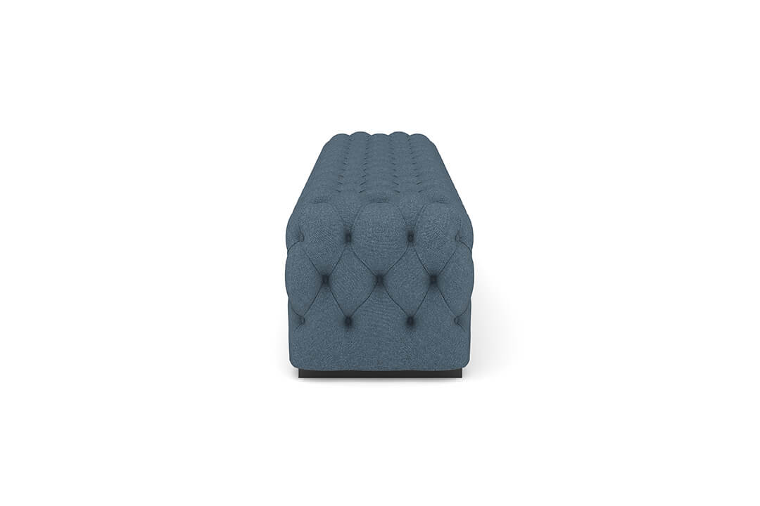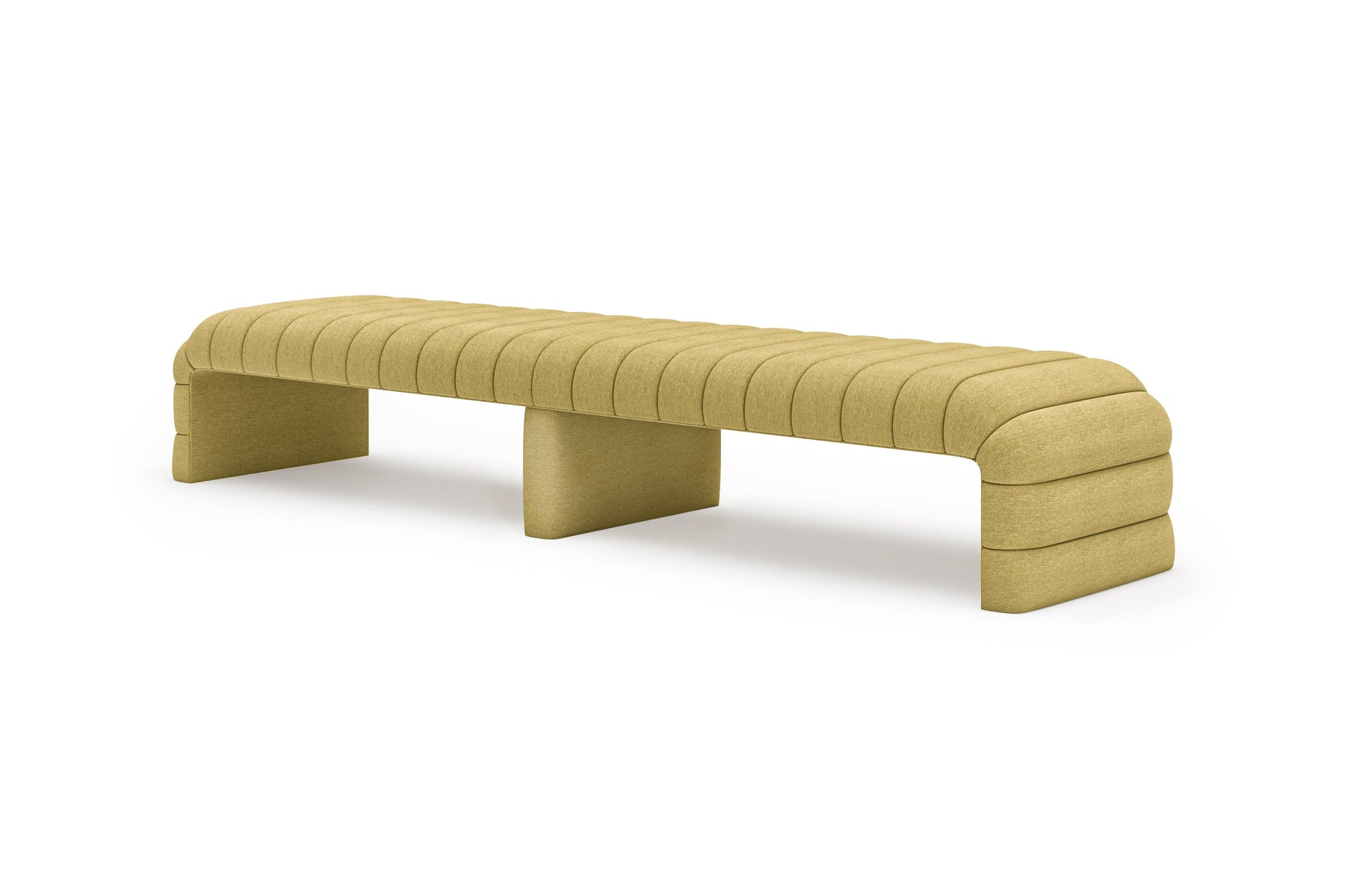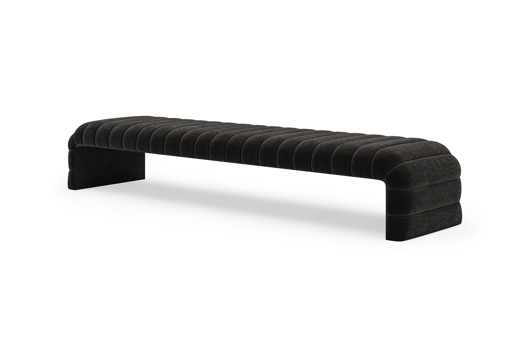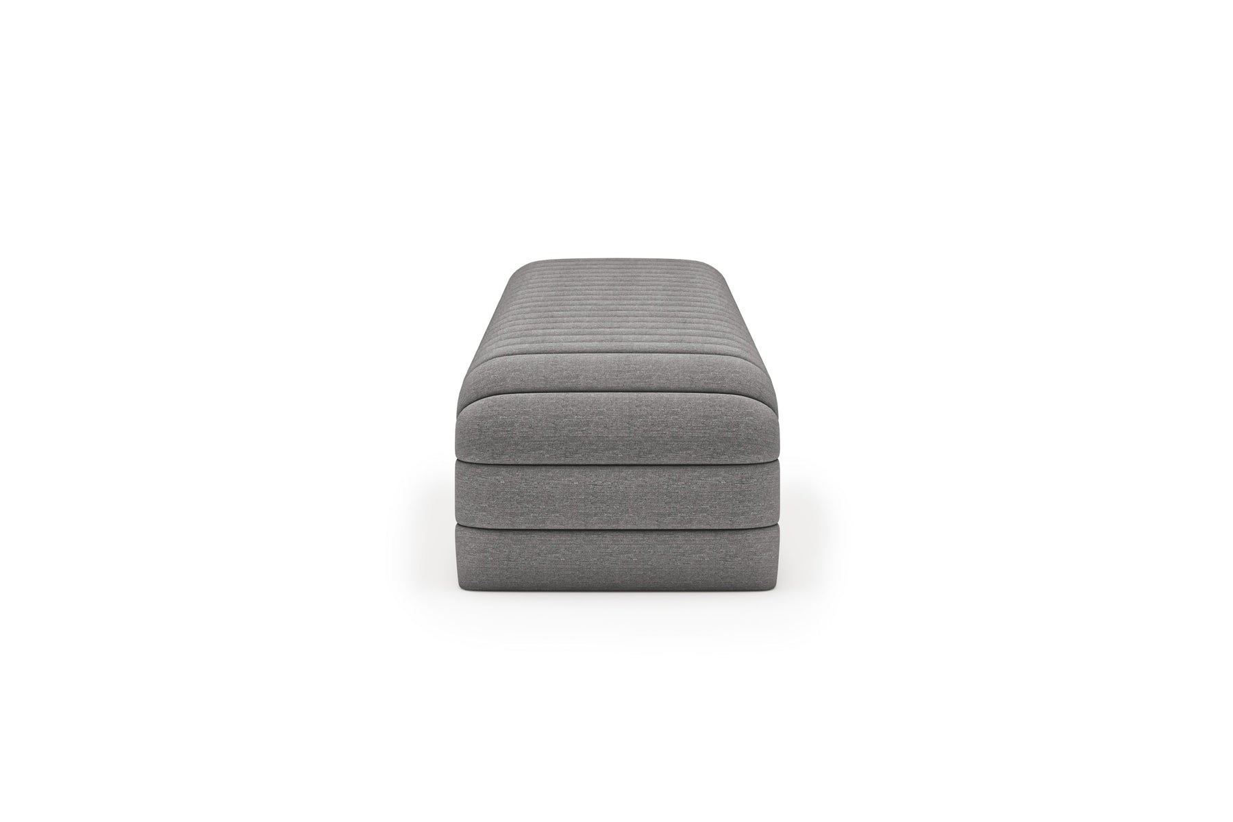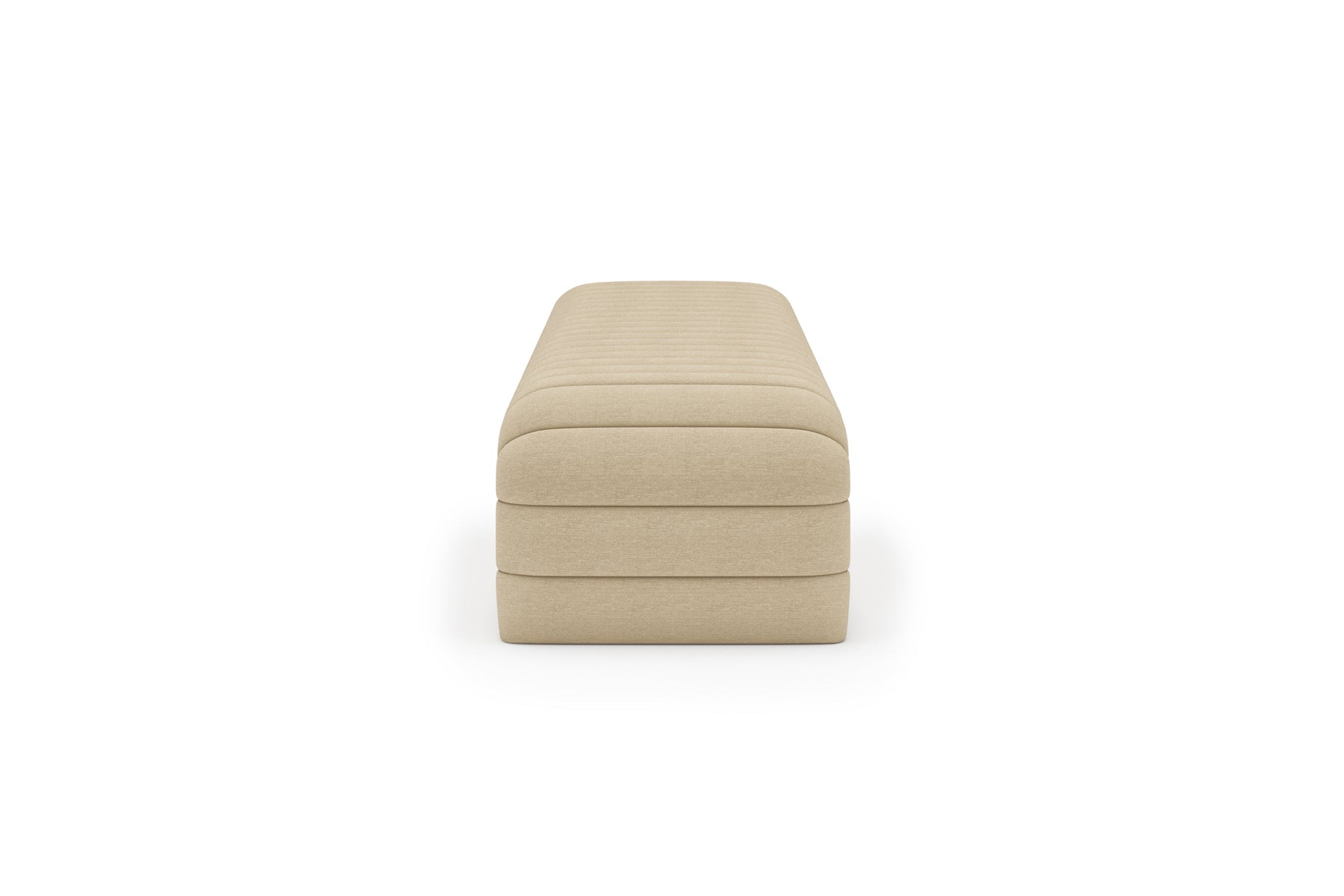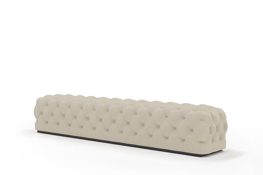 This upholstered bench is designed as a functional seating and accent piece for bedroom use. It features a rectangular silhouette with channel tufted detailing across the upholstered surface, creating a structured and uniform appearance. The bench is sized to provide ample seating space and to align visually with larger bed frames placed at the foot of the bed.