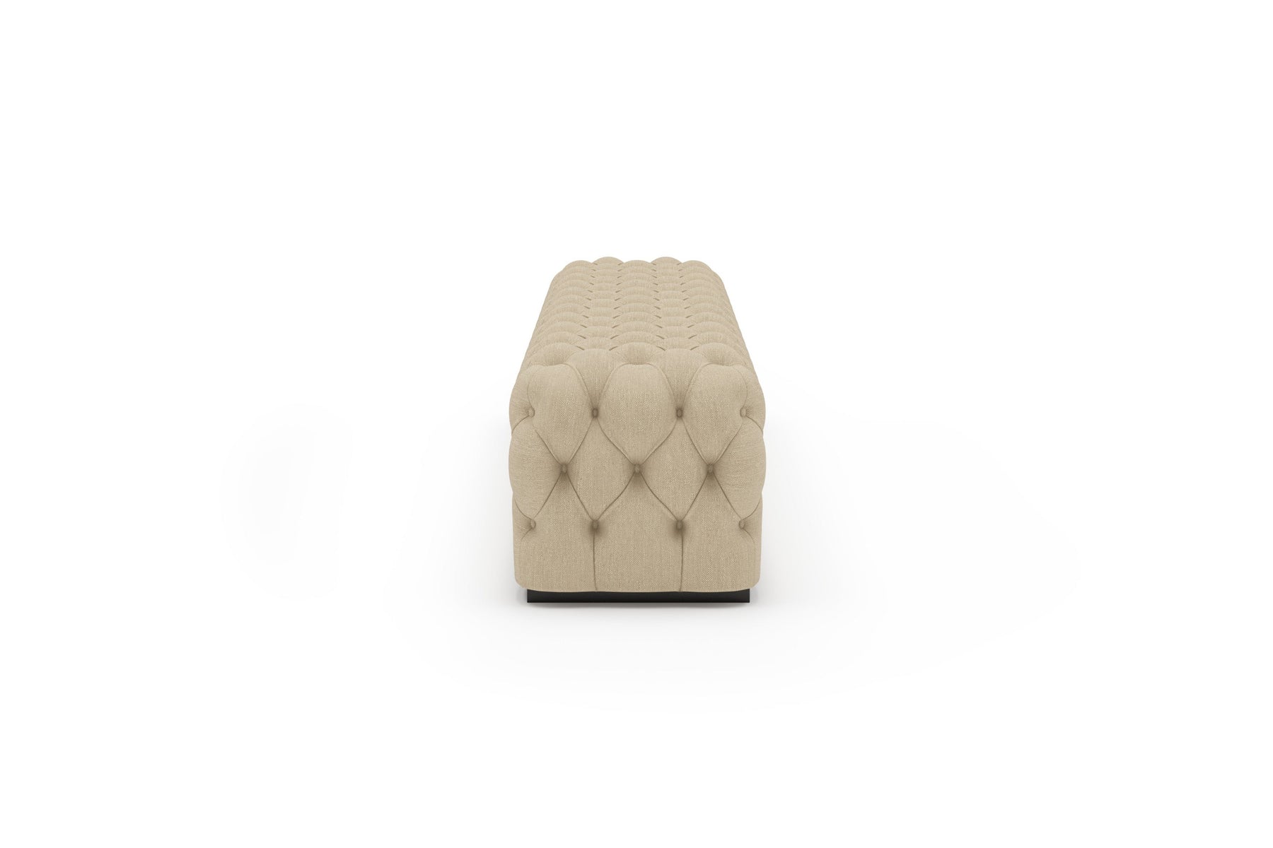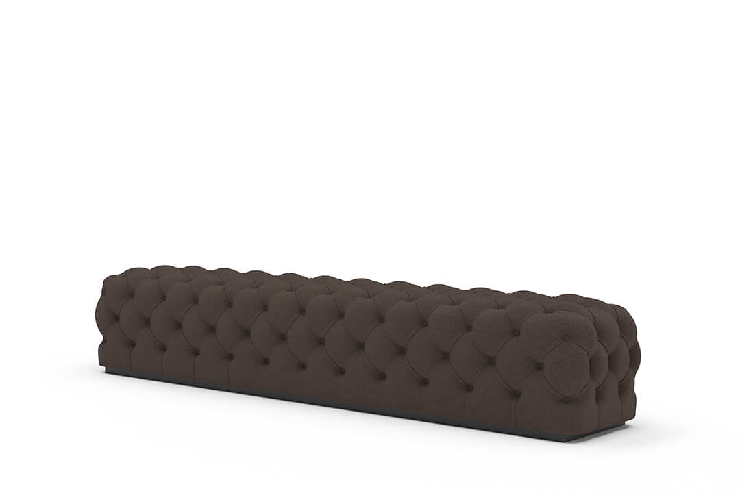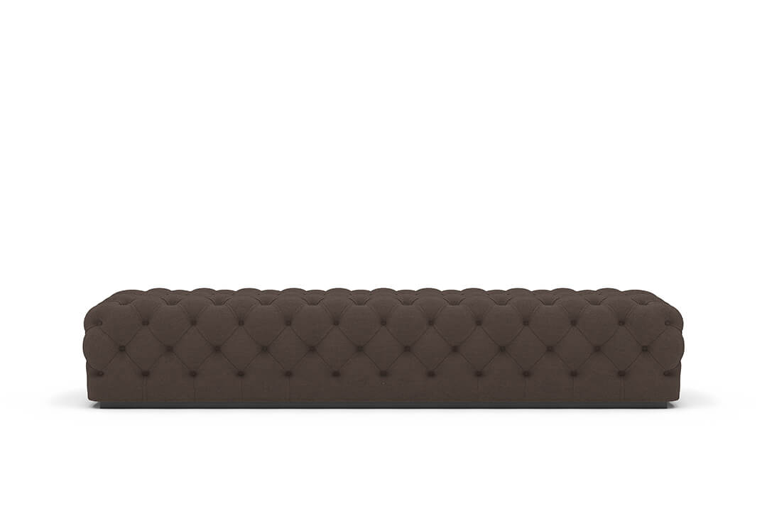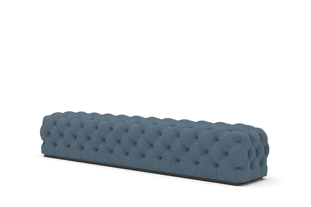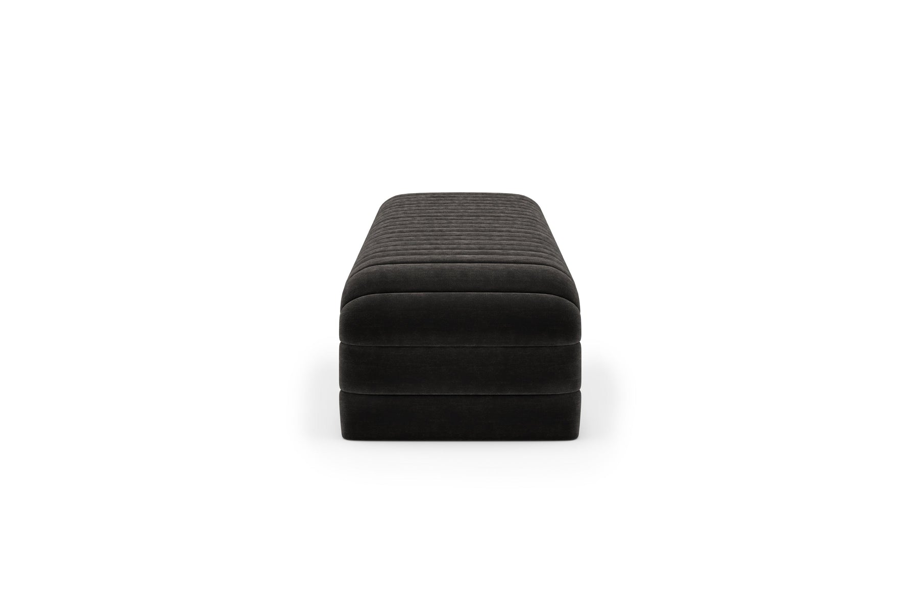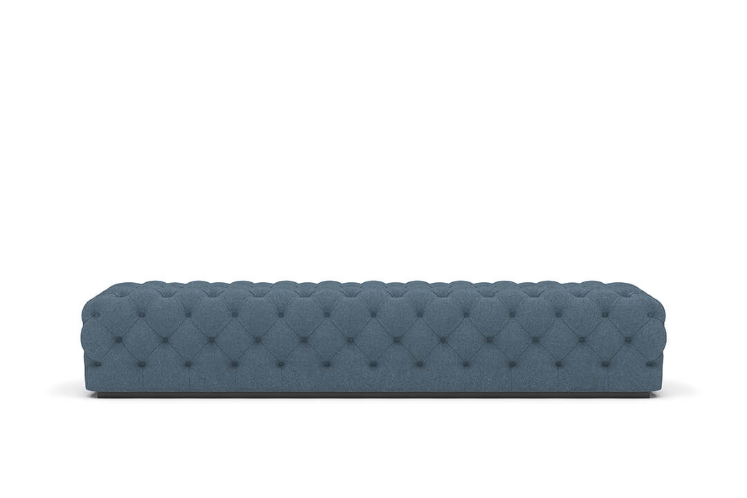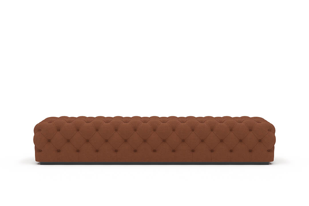 This upholstered bench is designed as a functional seating and accent piece for bedroom use. It features a rectangular silhouette with channel tufted detailing across the upholstered surface, creating a structured and uniform appearance. The bench is sized to provide ample seating space and to align visually with larger bed frames placed at the foot of the bed.