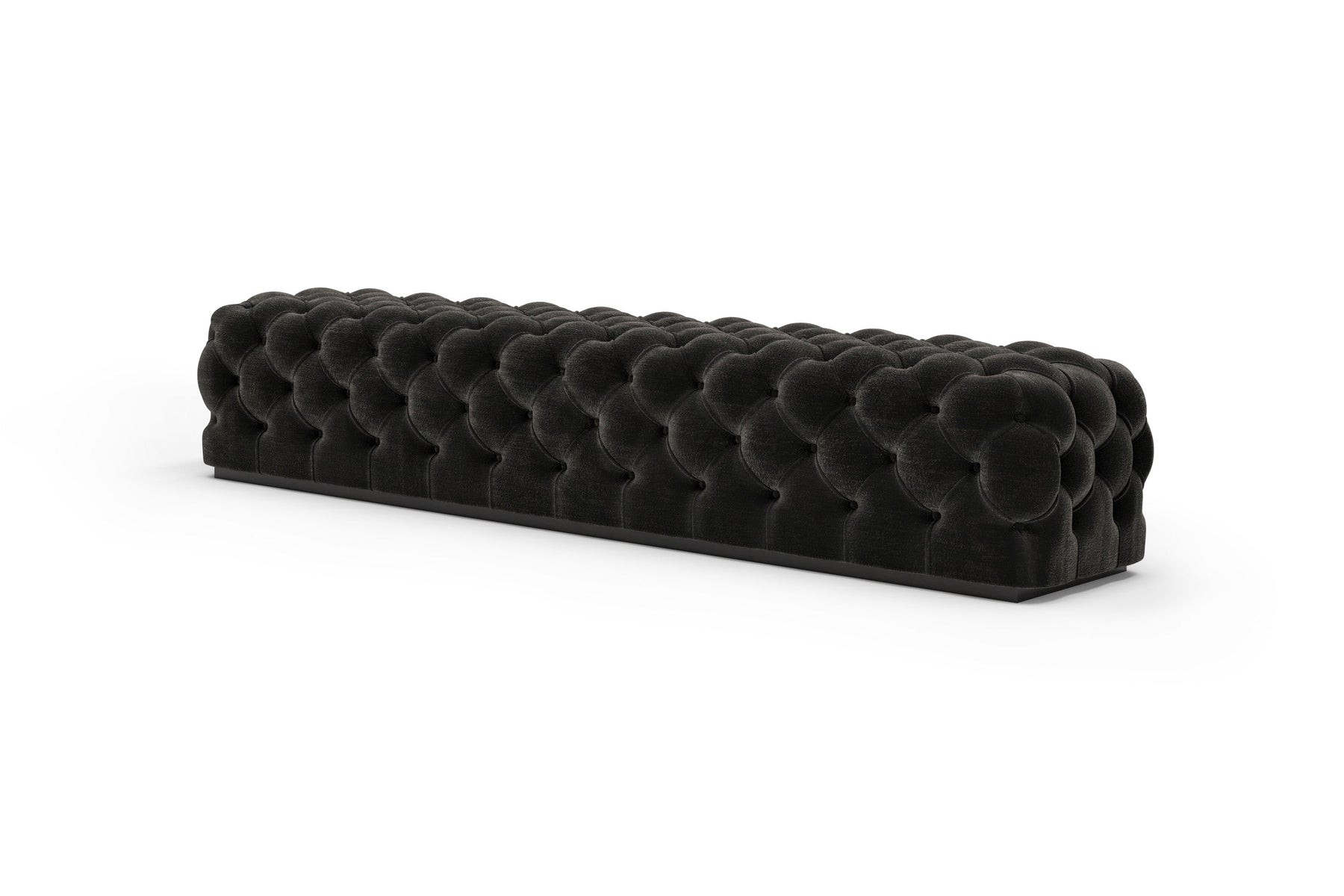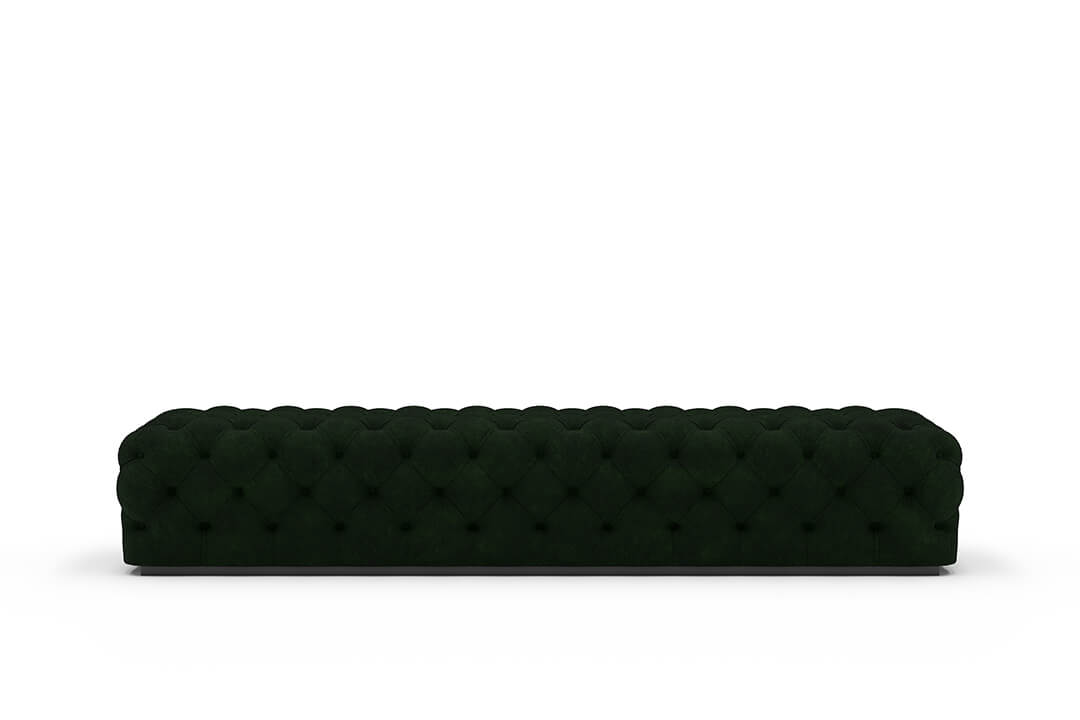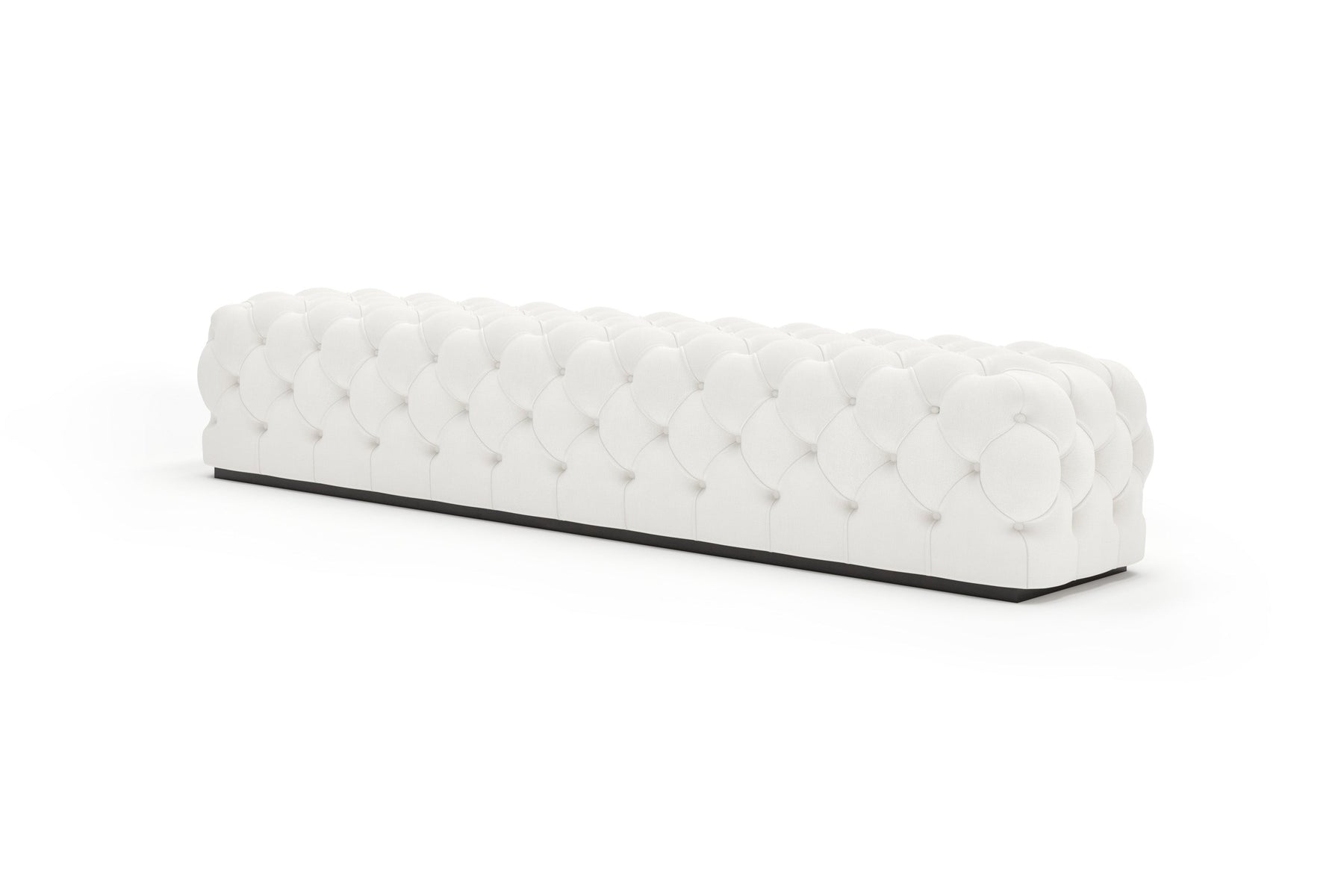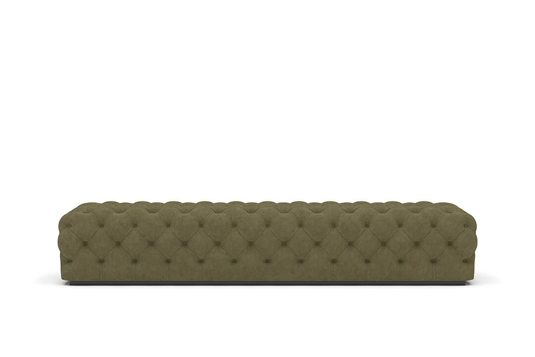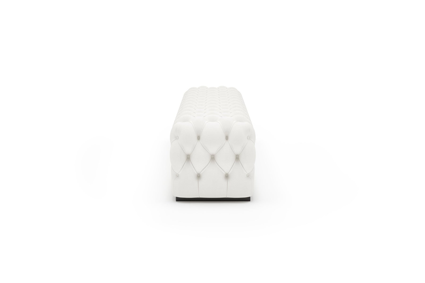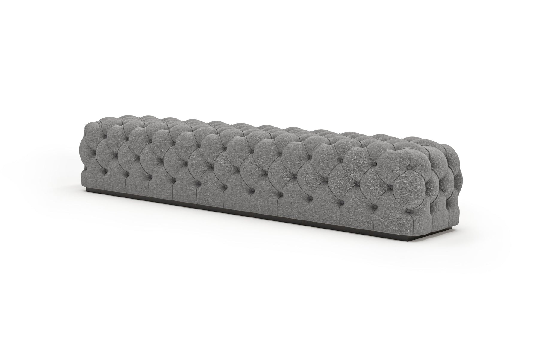 This upholstered bench is designed as a functional seating and accent piece for bedroom use. It features a rectangular silhouette with channel tufted detailing across the upholstered surface, creating a structured and uniform appearance. The bench is sized to provide ample seating space and to align visually with larger bed frames placed at the foot of the bed.