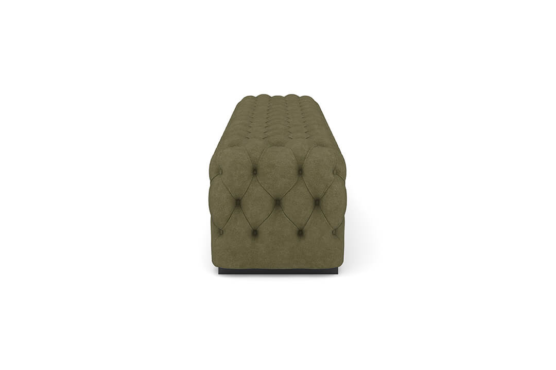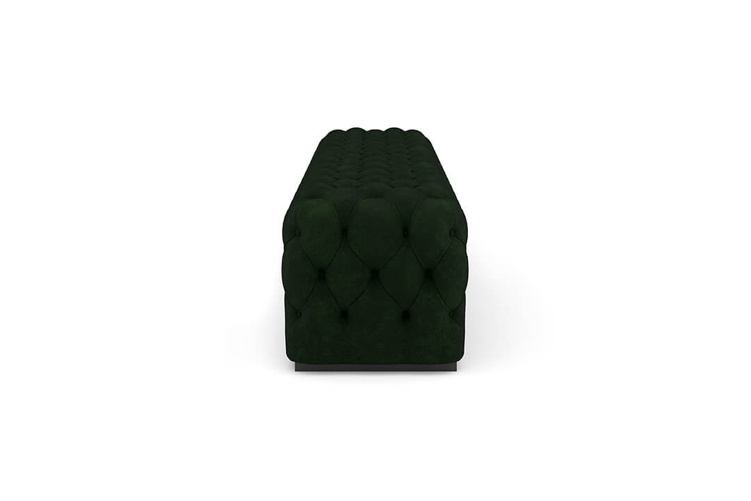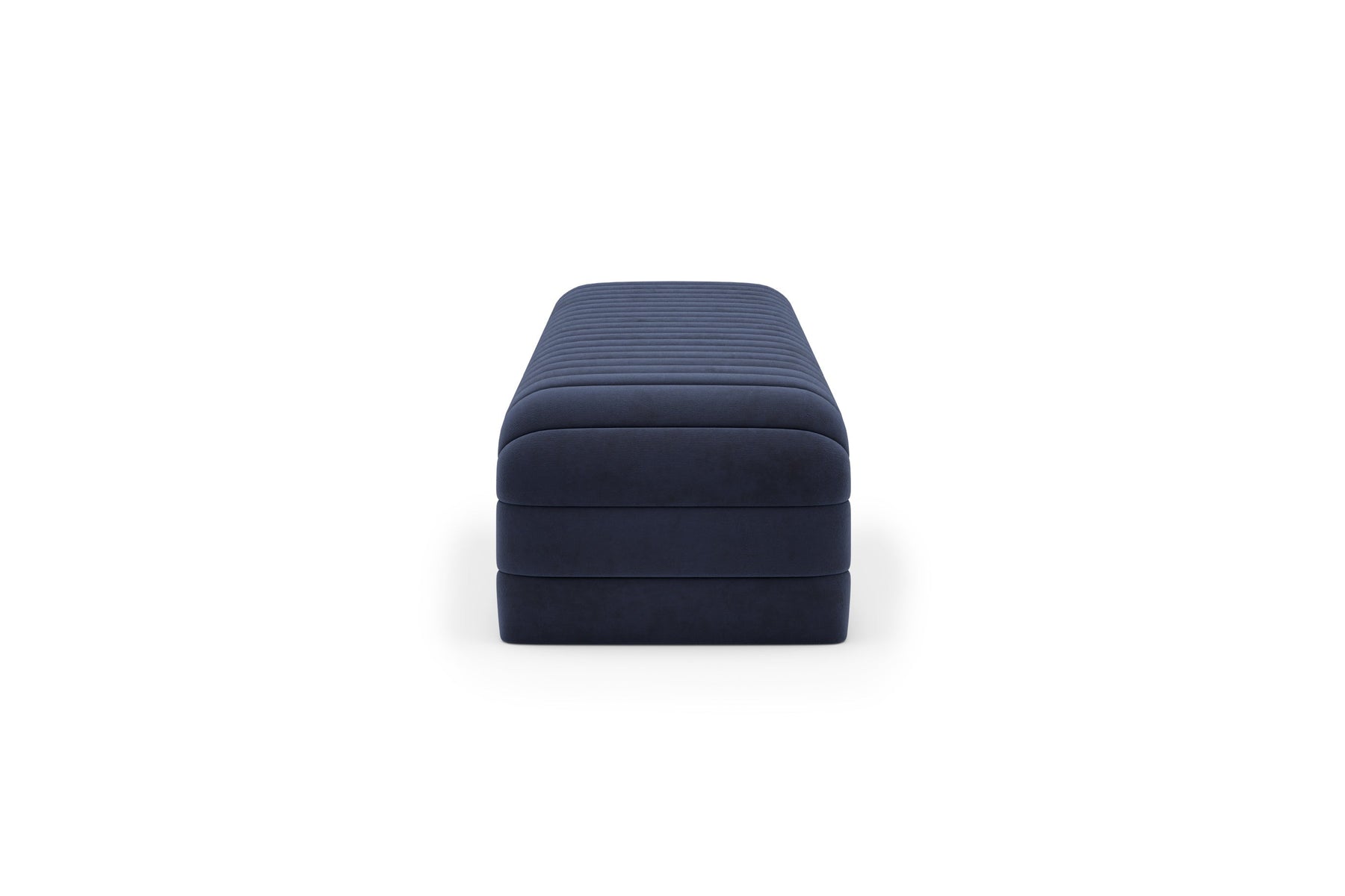 The bench includes a padded top surface for comfortable sitting. The channel tufting helps maintain the shape of the upholstery while adding texture to the overall design. The construction is intended to provide stability for regular use, whether seated or used as a resting surface for clothing or accessories.