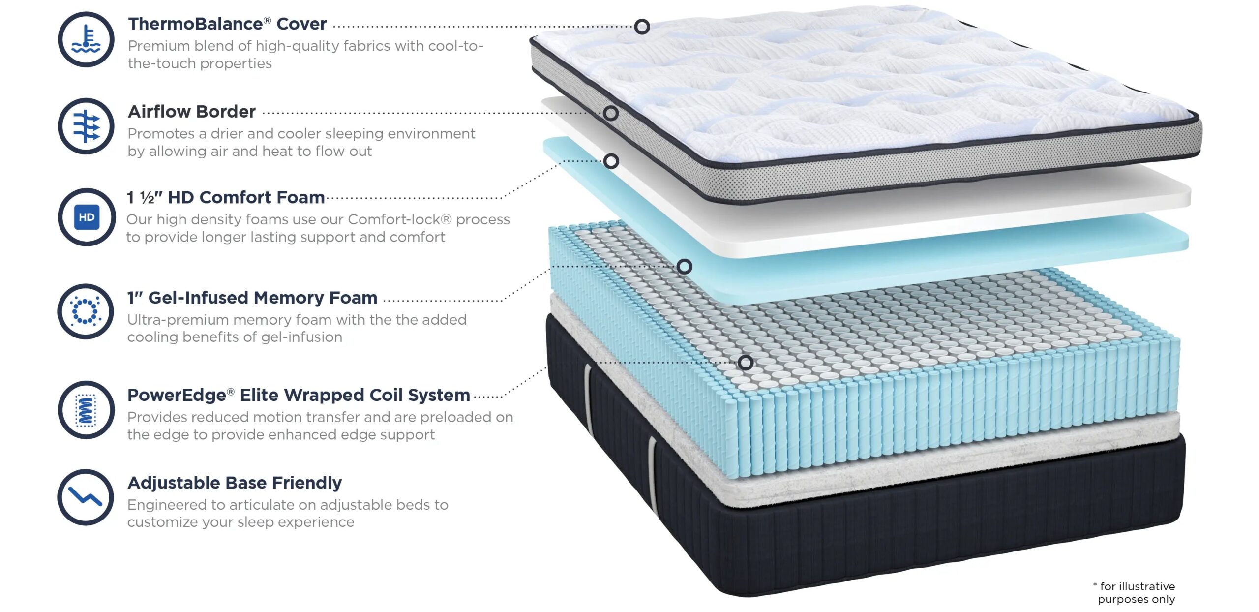Gel Infused Memory Foam – Ultra premium memory foam with the added cooling benefits of gel infusion.